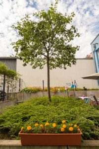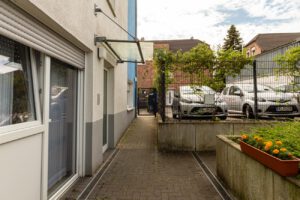 In dem Mehrfamilienhaus wohnen ausschließlich Senioren, im Erdgeschoss des Hauses befindet sich ein Pflegedienst.